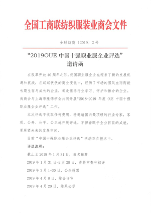 2019OUE中國十強職業(yè)服企業(yè)評選全新升級!